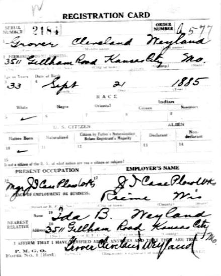 On September 9, 1918, Grover signed up at his local draft board. At age