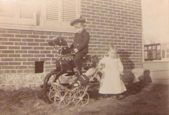 DICK COURTIAL, A NEPHEW OF LILLIE ALICE, IN FRONT OF THE "BIG" HOUSE
