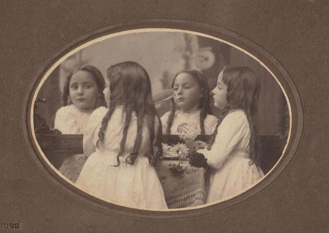 This time, it really IS a mirror! Margaret is on the left, holding a hair brush.